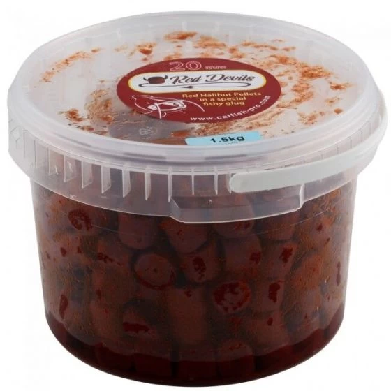 A special Red fish halibut glugged pellets to use as hookbaits for catfish. The extra attraction of the glug helps make the fish take your bait first!