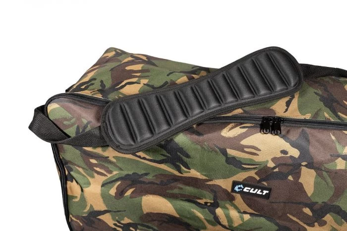 No one enjoys lugging their bed to their swim along with the rest of their gear, this bag is designed to make the prospect easier. The bag itself is generously proportioned to enable for extra comforts such as a pillow or our deluxe Sherpa bed cover and to fit all standard sized bedchairs. It is made from our hardwearing 600D Cult camo fabric keeping your bedchair clean and protected whilst being stored and transported.