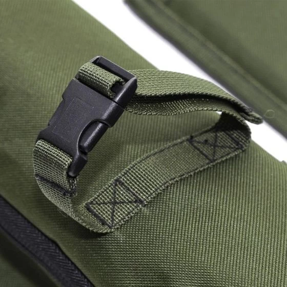 The quiver is made from a tough and durable 600 denier fabric and has a reinforced waterproof base. It features two external pockets and a main zipped compartment designed to hold a brolly and adjustable padded shoulder strap.
