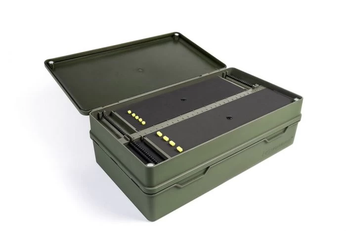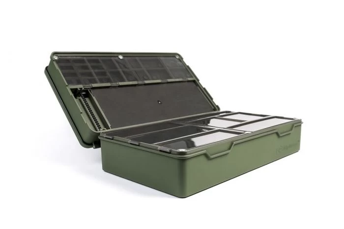 Step forward the Ridgemonkey Armoury Tackle Box: the only all-in-one tackle box available on the market today, developed to safely and efficiently store all the end tackle you will ever need with a massive 29 compartments of various sizes, three separate rig boards and an efficiently spacious simple unit design.