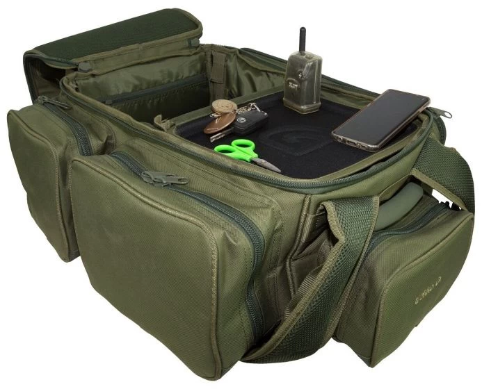 - 2 zipped mesh pockets on ridged table for rig tying storage